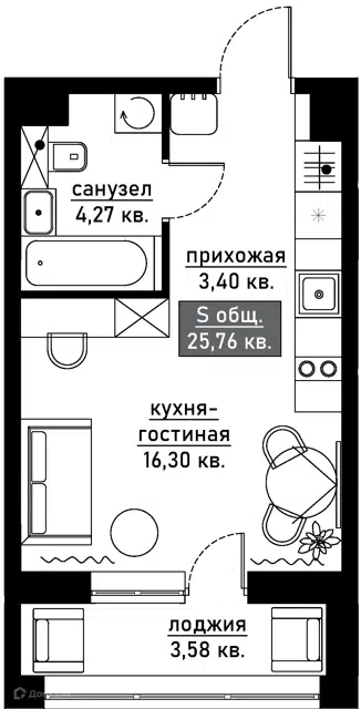 • Площадь: 29кв.м