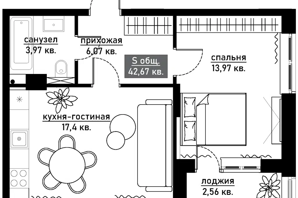 Общая площадь составляет: 77,6 м2.