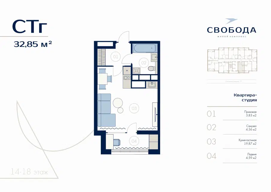 Продажа квартир-студий площадью 30 кв.м. на Донецкой улице