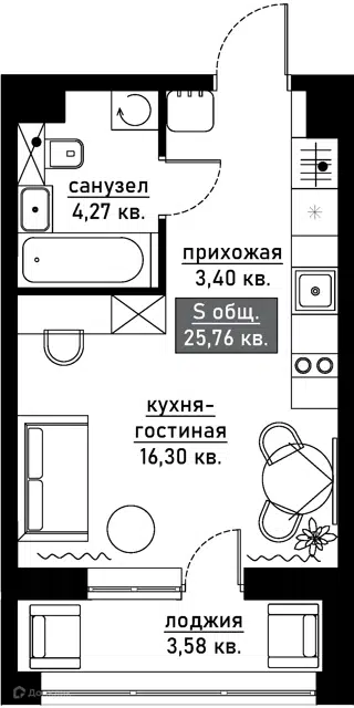 📐Общая площадь 24.7 м2