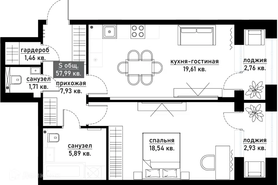 | 🟢 Площадь | от 49 до 85 м2. |