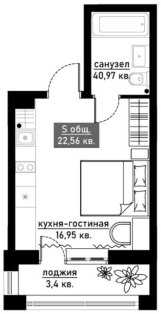 Площадь 22 кв.м.