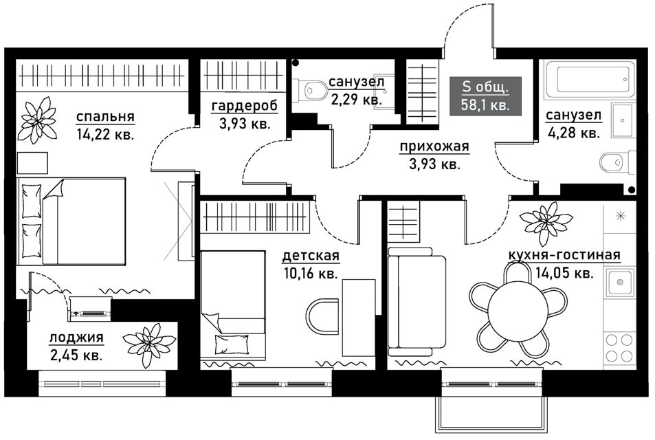 Продажа квартир площадью 60 кв.м. в СТ Юбилейном