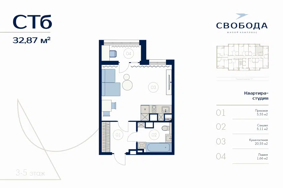 | 🟢 Площадь | от 32 до 37 м2. |