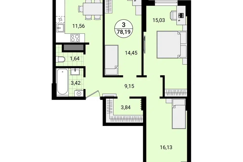 | 🟢 Площадь | от 65 до 86 м2. |