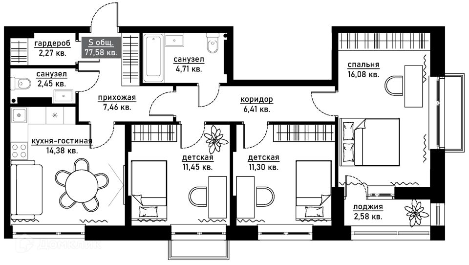 Жилая площадь: 87 м²