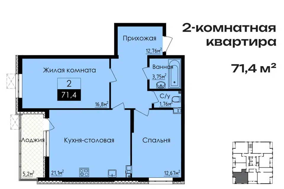 Общая площадь: 86,7 кв.м